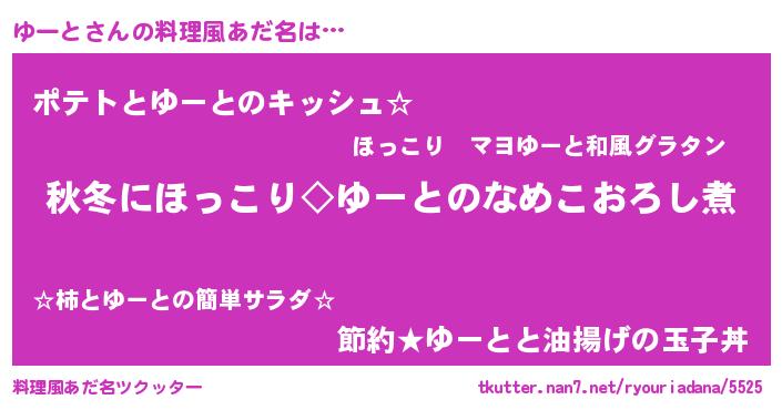 | ピコ太郎風あだ名 | 『ユー五郎』『ユコ一郎』『ユユ太郎』 |