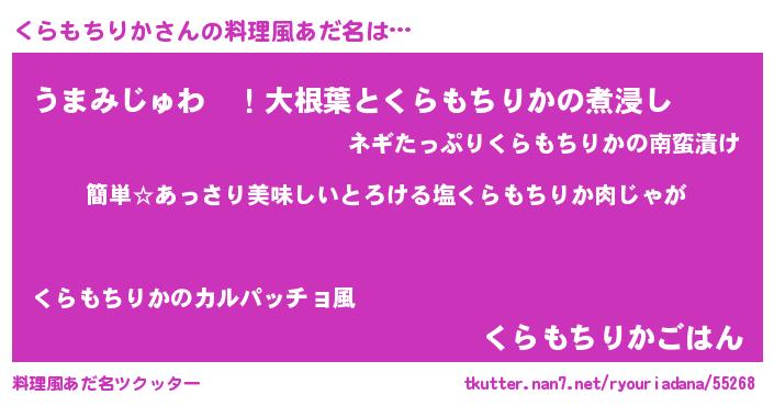 | ヘコむあだ名 | 『くらもちりか(笑)』『レバニラ』 |