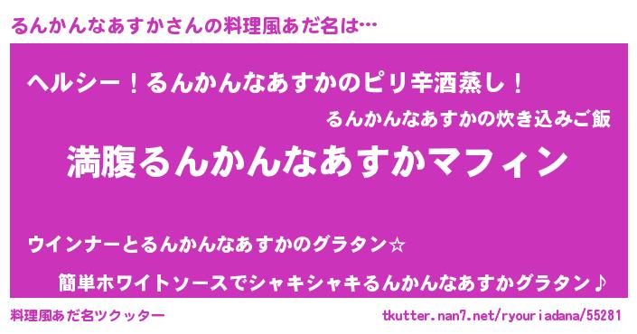 | ヘコむあだ名 | 『るんかんなあすか(笑)』『るんっ子』 |