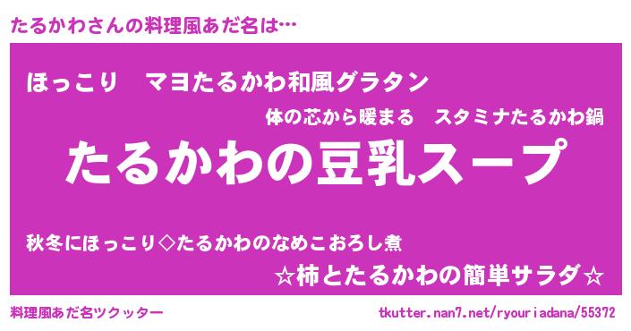 | 胡散臭い通販商品みたいなあだ名 | 『信頼と実績のサプリメント…その名も「たるかわ」』 |