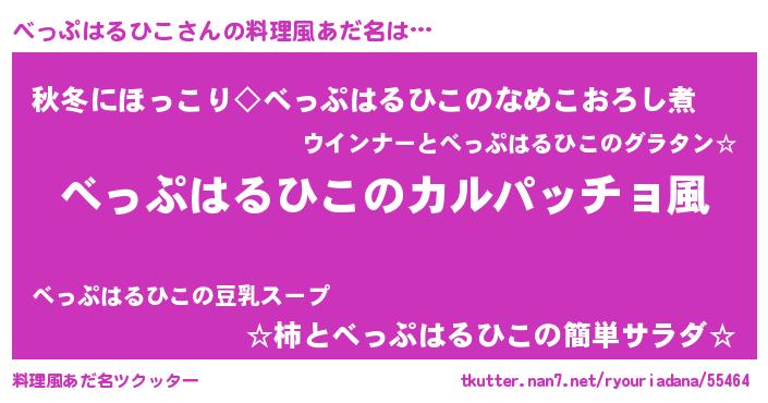| 男性向けラノベタイトル風あだ名 | 『魔弾の王とべっぷはるひこ』 |