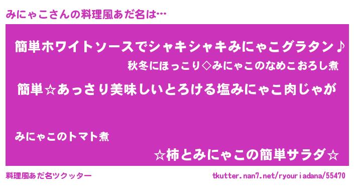 | 意味不明あだ名 | 『永久保存みにゃこ』『ペロリンみにゃこ』 |