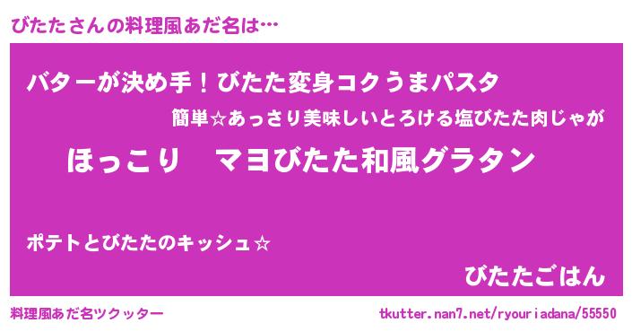 | 胡散臭い通販商品みたいなあだ名 | 『あなたにだけ特別に提供する世界で10本だけ現存している希少なブランデー…その名も「びたた」』 |