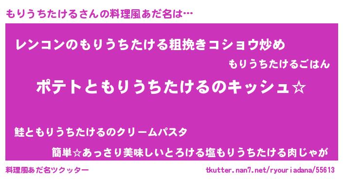 | 男性向けラノベタイトル風あだ名 | 『もりうちたけるの嫁は女の子じゃないと思った?』 |