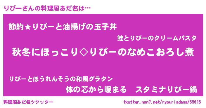 | ヘコむあだ名 | 『りびもー』『なまこ酢』『りびお』 |