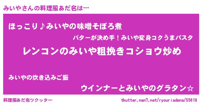 | 恥ずかしいあだ名 | 『ミイヤデラックス』『プリティーみいや』 |