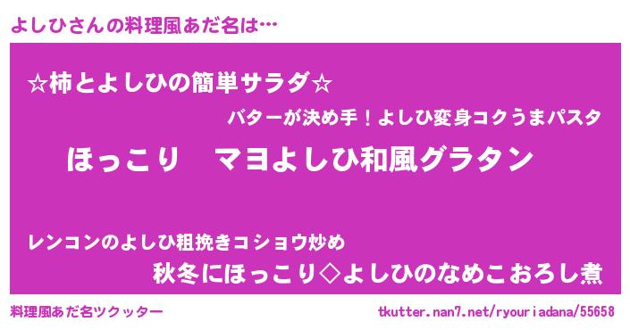 | ヘコむあだ名 | 『よしひ(遠い目)』『よしにー』 |
