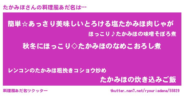 | 胡散臭い通販商品みたいなあだ名 | 『前代未聞の健康食品…その名も「たかみほ」』 |
