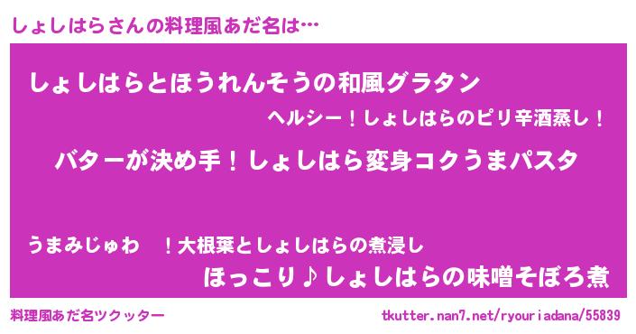 | 女子向けラノベタイトル風あだ名 | 『しょしはら恋絵巻』『闇のしょしはら』 |