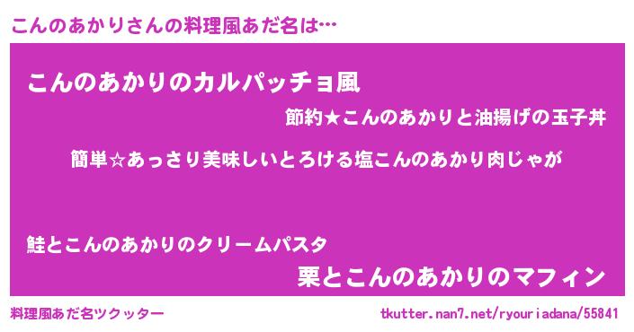 | 意味不明あだ名 | 『永久保存こんのあかり』 |