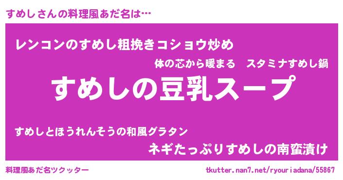 | 胡散臭い通販商品みたいなあだ名 | 『信頼と実績のサプリメント…その名も「すめし」』 |