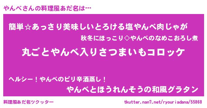 | ヘコむあだ名 | 『やんべ(苦笑)』『やんにゅー』 |