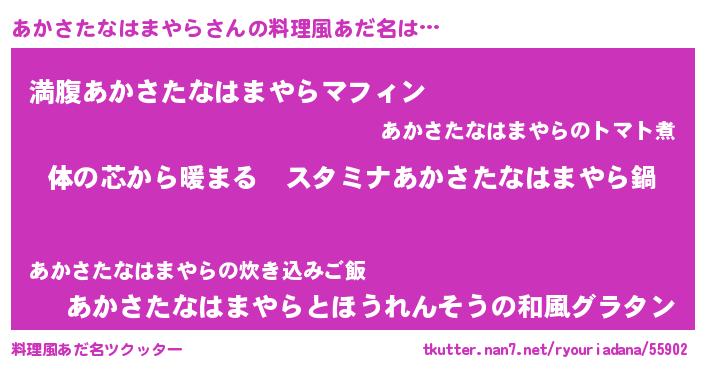 | 女子向けラノベタイトル風あだ名 | 『あかさたなはまやらの雑貨屋さん』 |