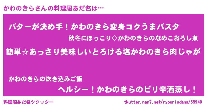 | ヒーロー風カッコイイあだ名 | 『ネオカワノキラ』『愛の使者かわのきら』 |