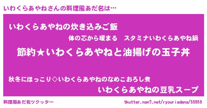 | 恥ずかしいあだ名 | 『プリティーいわくらあやね』『いわちん』 |