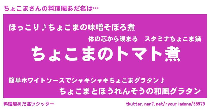 | 女子向けラノベタイトル風あだ名 | 『ちょこま夫妻のなれそめ』 |