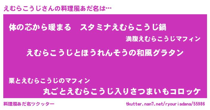 | 胡散臭い通販商品みたいなあだ名 | 『運命の人と巡り会える高級そうな壺…その名も「えむらこうじ」』 |