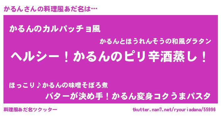 | 男性向けラノベタイトル風あだ名 | 『Re:かるんから始める異世界生活』 |