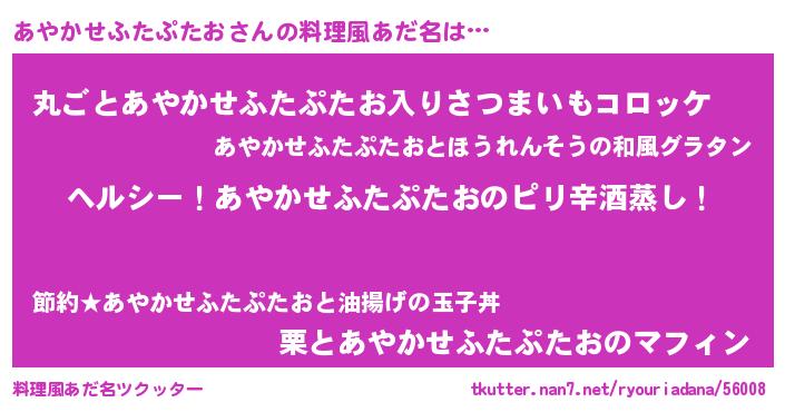 | 胡散臭い通販商品みたいなあだ名 | 『テレビで話題のアガリクス…その名も「あやかせふたぷたお」』 |