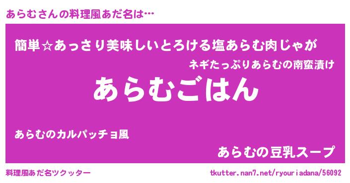 | 男性向けラノベタイトル風あだ名 | 『アラムスレイヤー』『魔弾の王とあらむ』 |