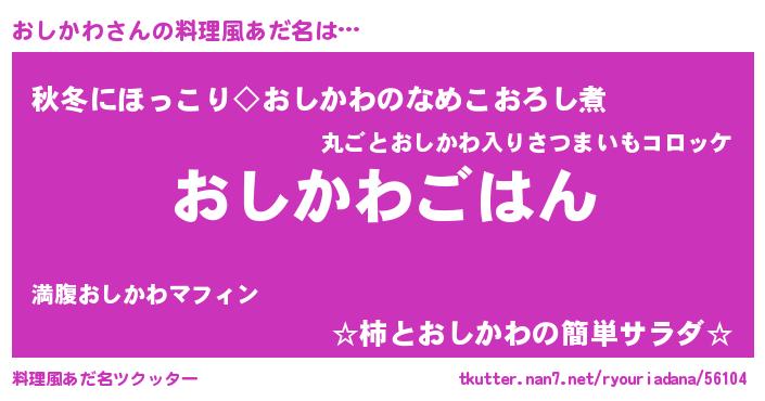 | ヘコむあだ名 | 『おしかわ(笑)』『おしっ子』『豆乳』 |