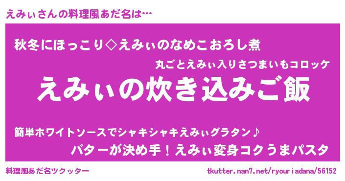 | ヘコむあだ名 | 『えみお』『えみもー』『なまこ酢』 |