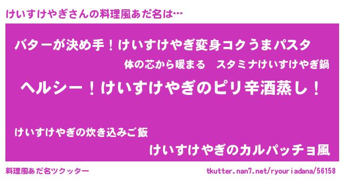 | 男性向けラノベタイトル風あだ名 | 『Re:けいすけやぎから始める異世界生活』 |