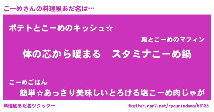 | 意味不明あだ名 | 『こーめフォーエバー』『永久保存こーめ』 |
