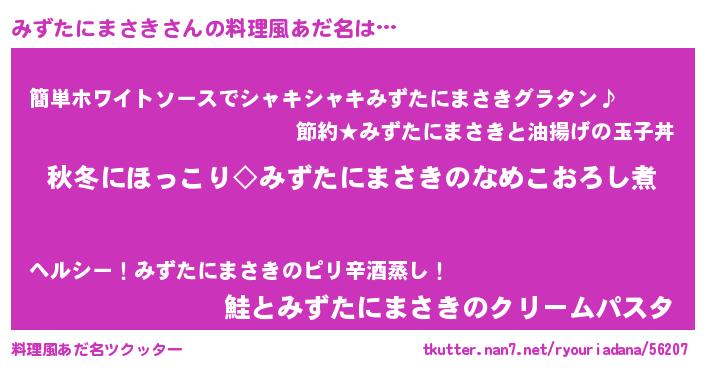 | ポケモン風あだ名 | 『ミズゴンZ』『ヒミズタニマサキ』 |