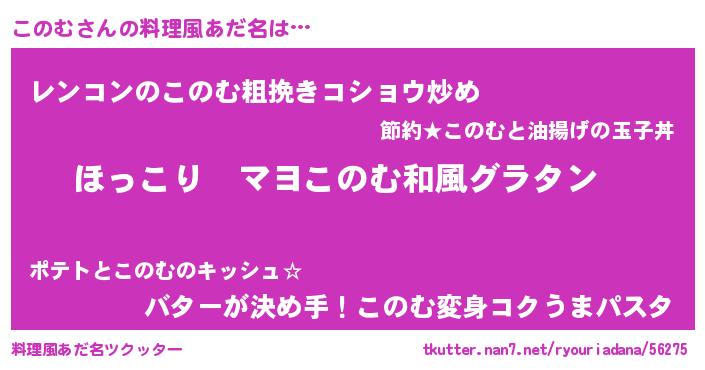 | 男性向けラノベタイトル風あだ名 | 『この素晴らしい世界にこのむを!』 |