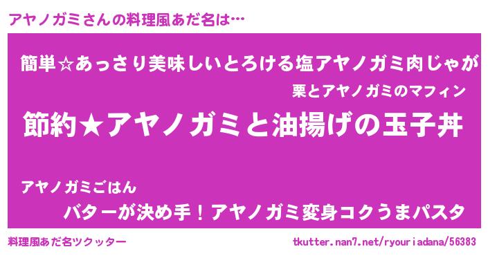 | ヒーロー風カッコイイあだ名 | 『スーパーアヤノガミ』『ネオアヤノガミ』 |