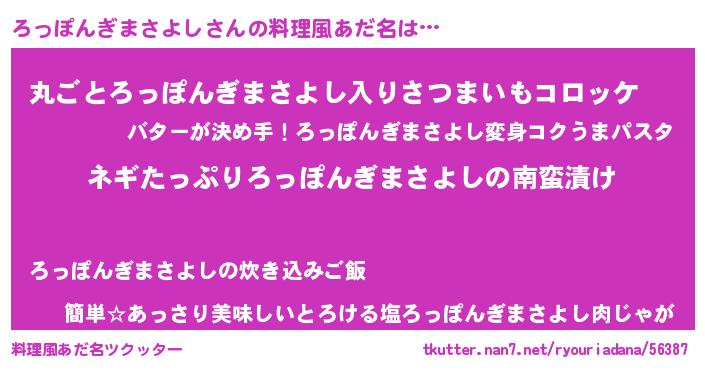 | 意味不明あだ名 | 『ペロリンろっぽんぎまさよし』 |