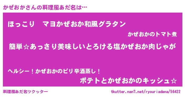 | ヘコむあだ名 | 『かぜおか(爆)』『かぜ太郎』『豆乳』 |