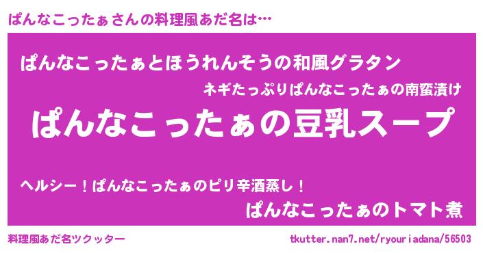 | 女子向けラノベタイトル風あだ名 | 『ぱんなこったぁは平凡を望む』 |