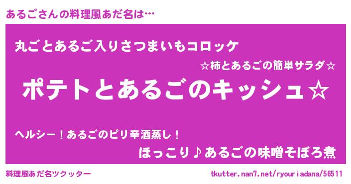 | 女子向けラノベタイトル風あだ名 | 『あるごの卵を拾いまして』『闇のあるご』 |
