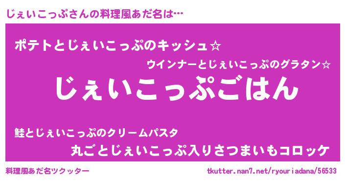 | ヘコむあだ名 | 『じぇぷりん』『なまこ酢』 |