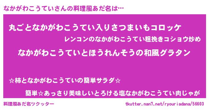 | ヘコむあだ名 | 『なかがわこうてい(笑)』『なかふぇ~』 |