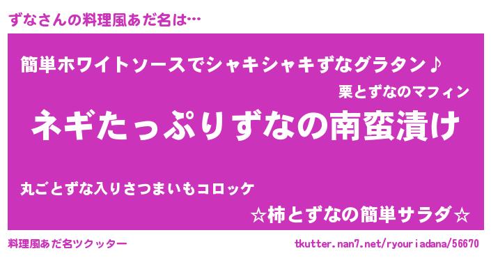 | 男性向けラノベタイトル風あだ名 | 『ズナアートオンライン』『緋弾のズナ』 |