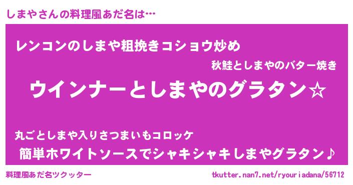 | 女子向けラノベタイトル風あだ名 | 『しまや伯爵の花嫁』『しまや様がみてる』 |