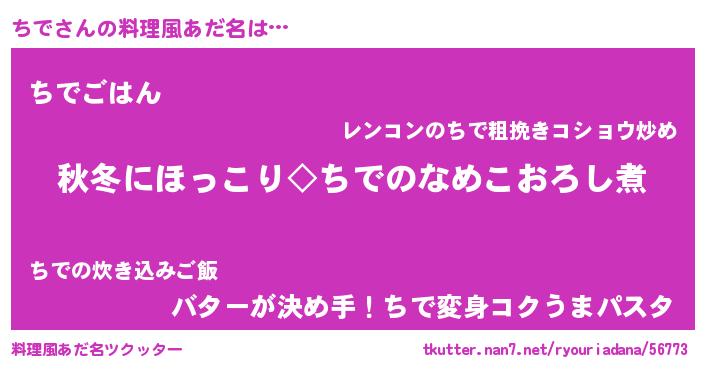 | ヘコむあだ名 | 『酢こんぶ』『ちでにー』『ちでを』 |