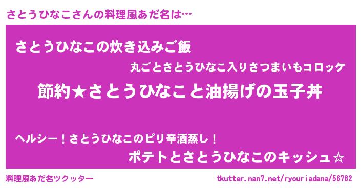 | 恥ずかしいあだ名 | 『プリティーさとうひなこ』『さとっちょ』 |