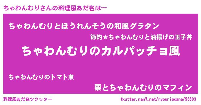 | 意味不明あだ名 | 『住所不定無職ちゃわんむり(41歳)』 |