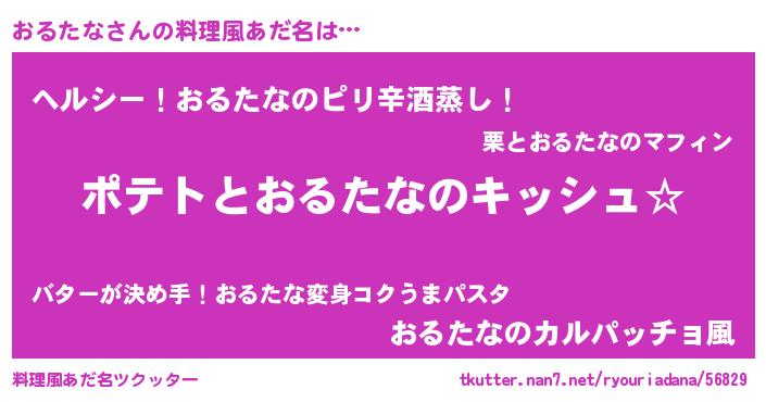 | 女子向けラノベタイトル風あだ名 | 『おるたなの卵を拾いまして』 |