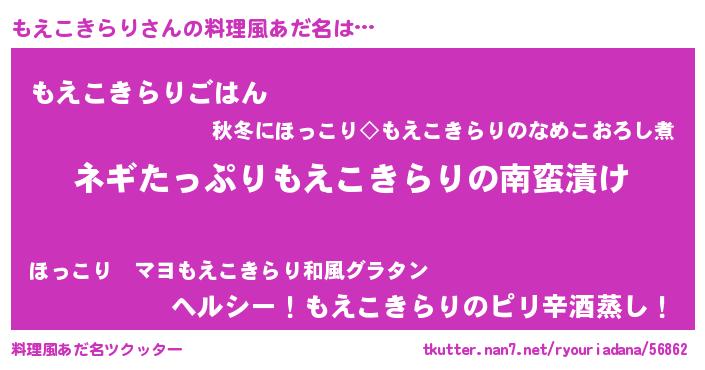 | ヒーロー風カッコイイあだ名 | 『スーパーモエコキラリ』『仮面モエダー』 |