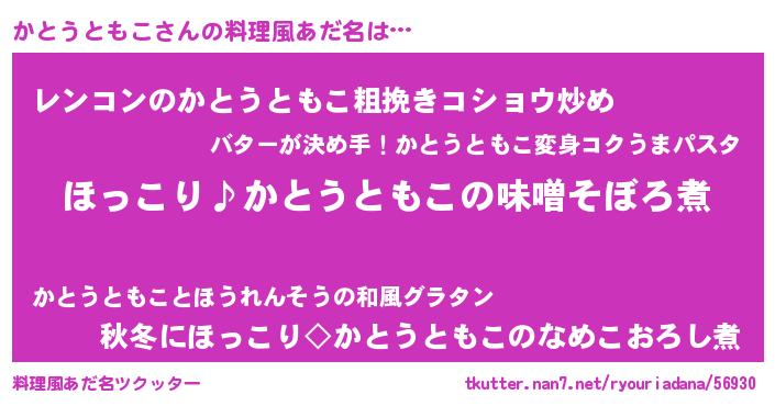 | ヒーロー風カッコイイあだ名 | 『スーパーカトウトモコ』 |