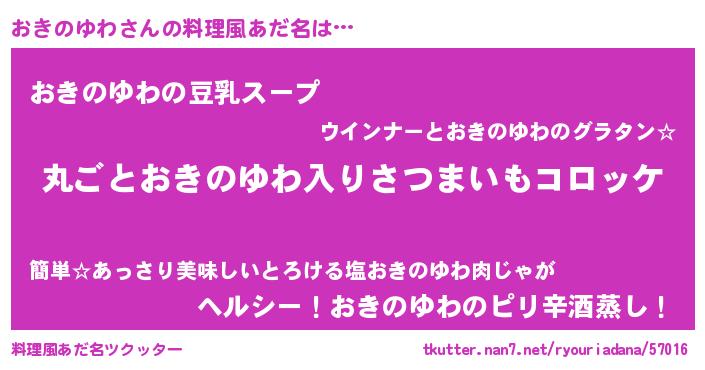 | 意味不明あだ名 | 『住所不定無職おきのゆわ(91歳)』 |