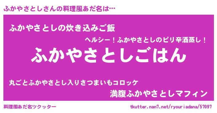 | 胡散臭い通販商品みたいなあだ名 | 『来世でも幸せになれる健康食品…その名も「ふかやさとし」』 |