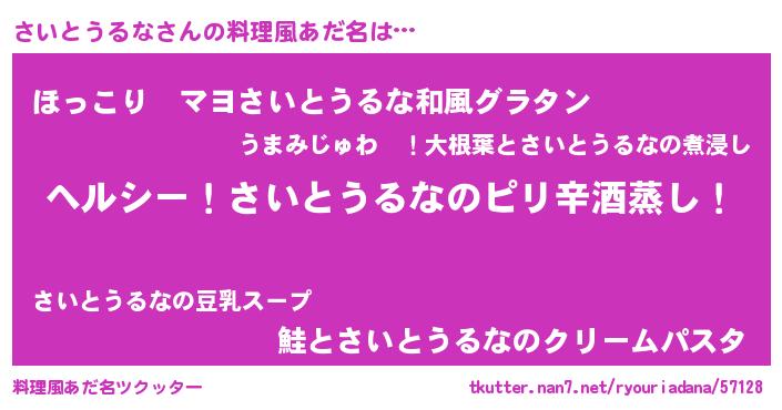 | 男性向けラノベタイトル風あだ名 | 『Re:さいとうるなから始める異世界生活』 |
