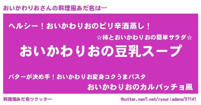 | 女子向けラノベタイトル風あだ名 | 『おいかわりおは平凡を望む』 |