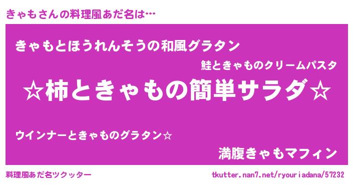 | 意味不明あだ名 | 『めかぶ科きゃも属』『永久保存きゃも』 |